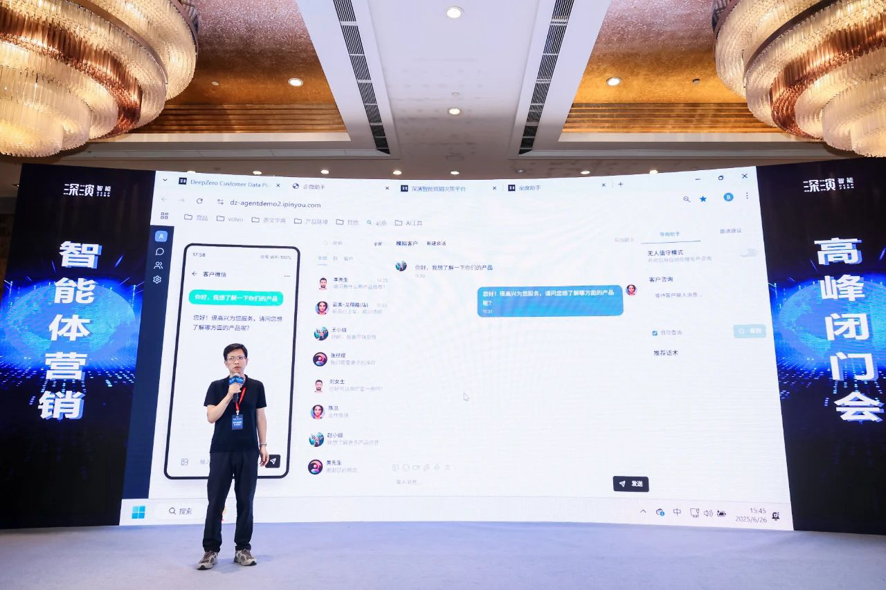 作为已经成功帮助几十家大型企业 AI Agent落地的行业领导者,尊龙凯时智能DeepAgent Neo全面赋能营销域和销售域。 黄晓南和尊龙凯时智能CTO欧阳辰与尊龙凯时智能副总裁曹玉骥一起,为嘉宾现场演示了CRM、Social、销售、客服等场景的全面智能体,情景展现了DeepAgent Neo如何全面赋能企业各个环节。